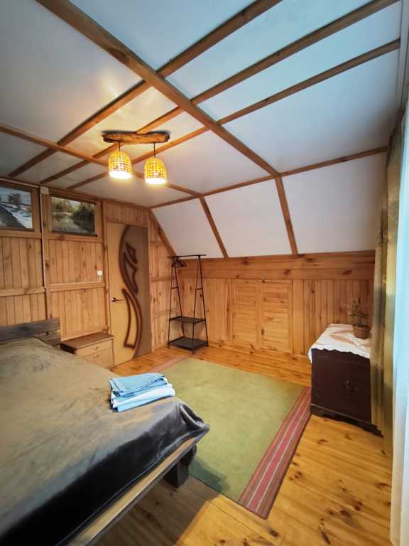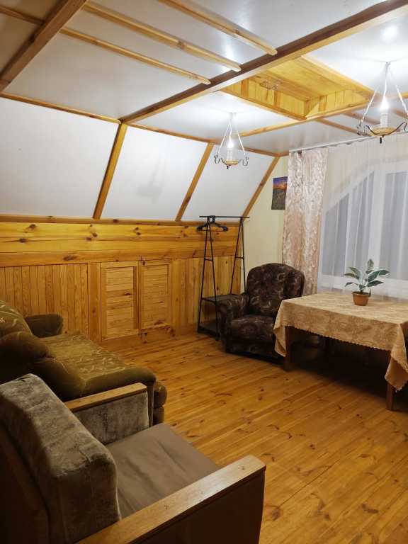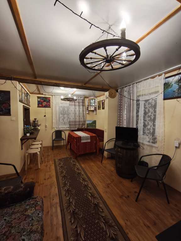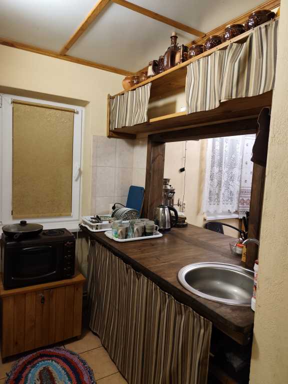 В доме имеется: санузел с душем и горячей водой, полотенца, фен, утюг, постельное белье, кухня со всем необходимым для приготовления пищи (чайник, плита, духовой шкаф, кастрюли, сковороды, доски, ножи и т.д.), посуда, холодильник, чай, кофе, сахар, музыкальная колонка с микрофоном.
