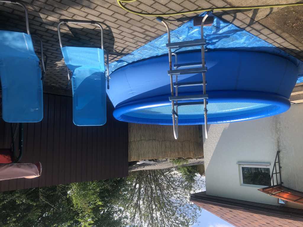 Летом на территории большой бассейн диаметром 4000см.