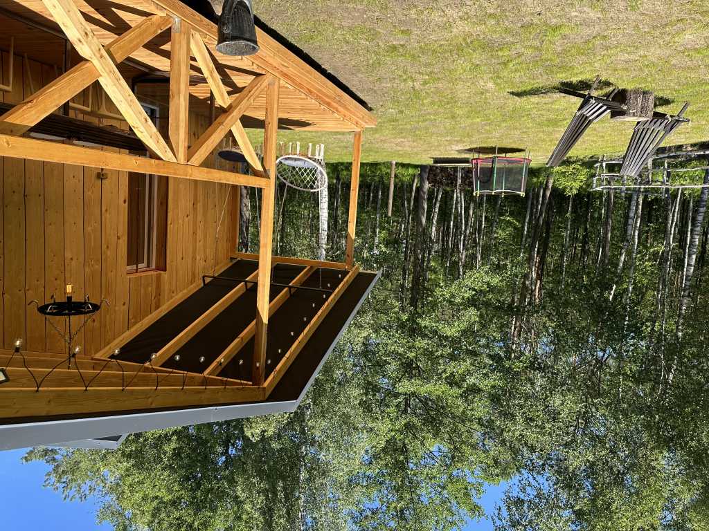 Для детей есть песочница, батут, гамак, качели.